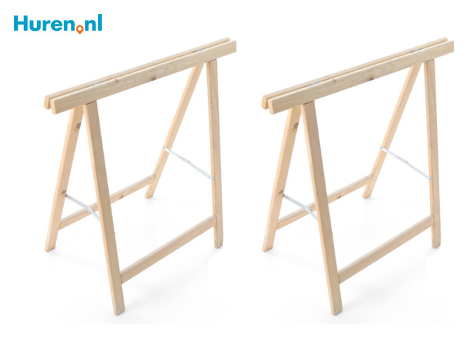 Er zijn schragen te huur in verschillende maten. Je kan schragen huren die uitgeklapt ongeveer 70 centimeter hoog zijn, dit wordt meestal gezien als de standaardmaat, maar er zijn ook grotere en juist kleinere schragen te huur. Op Huren.nl vind je alle verhuurbedrijven van schragen. Bekijk of er een verhuurbedrijf tussen zit wat dicht bij jou in de buurt zit en ook nog eens de door jou gewenste schragen verhuurt. Heb je heel veel schragen nodig? Informeer dan bij het verhuurbedrijf naar jouw keuze of ze genoeg schragen op voorraad hebben.