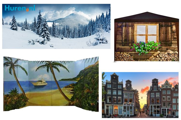 Voor (thema)feesten, dinershows en andere evenementen kan het leuk zijn om de ruimte op te fleuren of in te kaderen. Dit kun je doen door middel van decorwanden en -doeken. Organiseer je een feestje met als thema ‘winter’, ‘cowboy’ of ‘jungle’? Zorg dan ook echt dat je gasten een andere wereld binnenstappen. Sommige verhuurbedrijven bieden losse doeken aan, terwijl andere verhuurders wanden en doeken met een stellage of raam verhuren. De decorwanden kunnen zowel binnen als buiten gebruikt worden (vraag dit na bij de verhuurder). Huur naast decorwanden ook ander decoratie materiaal om je thema te optimaliseren.