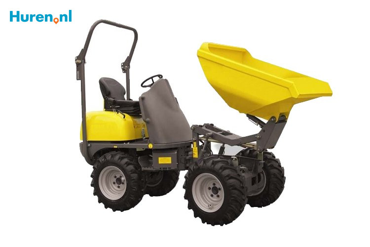 In de meeste gevallen is een wieldumper voorzien van 4-wielaandrijving, een dieselmotor en een knikbare chassis om de lading te kunnen kiepen. Doordat de dumper voorzien is van een draaikrans is het mogelijk om de lading niet alleen aan de voorkant, maar ook aan de linker- of rechterkant van de machine te dumpen. Ook zijn de meeste dumpers uitgevoerd met een neerklapbare beugel en een zwaailamp. Wel zo veilig als je ook in het (schemer)donker wilt werken. Huur je een wieldumper, dan moet je rekening houden met borg- en transportkosten. De hoogte van deze kosten verschilt per verhuurbedrijf.