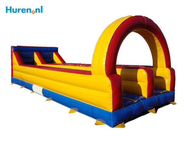 Een elastiek om je middel en net zo lang rennen op een opblaasbaar parcours tot je niet meer kunt, dat is de bungeerun! Het bungeerunspel is een ideaal spel om te huren op bijvoorbeeld een speldag op school, of een buurtfeest. Je speelt met zijn tweetjes tegen elkaar, dus een leuke uitdaging! De bungeerun kun je bij verschillende verhuurbedrijven huren. Meestal kun je de bungeerun inclusief brengen en op- en afbouw huren. Wil je totaal geen omkijken naar de bungeerun hebben op de dag zelf? Dan kun je bij sommige verhuurders terecht voor het huren van een bungeerun inclusief halen en brengen, opbouwen en afbouwen én begeleiding gedurende de dag. Toch liever zelf halen en brengen? Huur dan een aanhanger of busje.